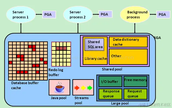 一图胜过千言万语啊,一看就明白了数据库内存结构包括PGA和SGA,那么问题来了,具体呢?