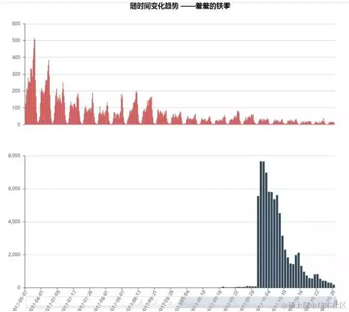 可能大家已经意识到了,没错就是盗版片源放出来了。很多没去电影院观看,一直苦苦等待盗版资源的朋友开始在观看完电影后发表他们的影评了。老实说,这部分人还是不少的,大约占到了评论最高峰时期的五分之一了。对于一部这样热门的电影(当时也算是半个现象级电影了),我认为这还是一个相当可观的数量了。估计片方们在吐血吧,确实盗版对他们的利益损失不小。在此还是呼吁下大家,对于能在电影院看到的,口碑又不错你又想看的,那就还是去电影院看吧。影院的视听感觉是家里没法比拟的。毕竟不是谁都能像思聪一样买得起100寸的电视【请脑补思聪配图】另外还有一点特别的发现是作为一部2015年的老片子,竟然在2017年10月份还出现了一波小小高潮。。。。 这。。。大家应该都想到了哈。很多人并没有看过他们早期的电影,而是从《铁拳》才开始接触开心麻花的,看完发现他们拍的电影还有点意思,因而有翻回去看了看他们以前拍的电影