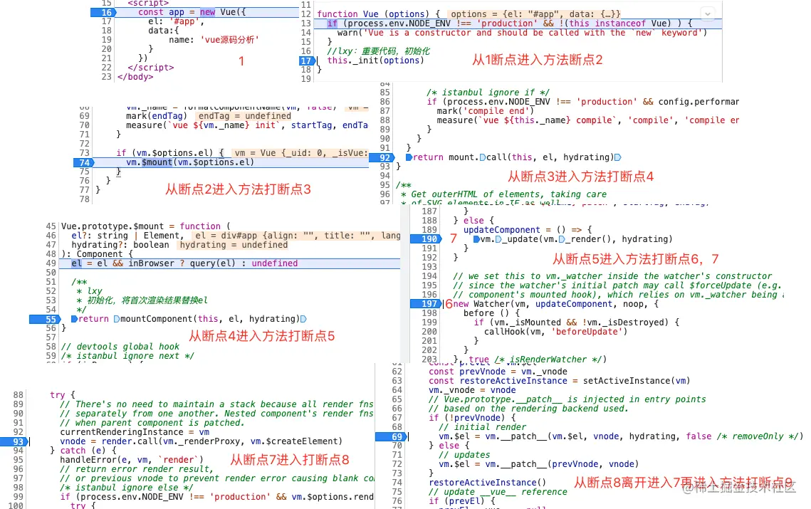 断点6处可以看出来,2.0中一个组件只有一个watcher