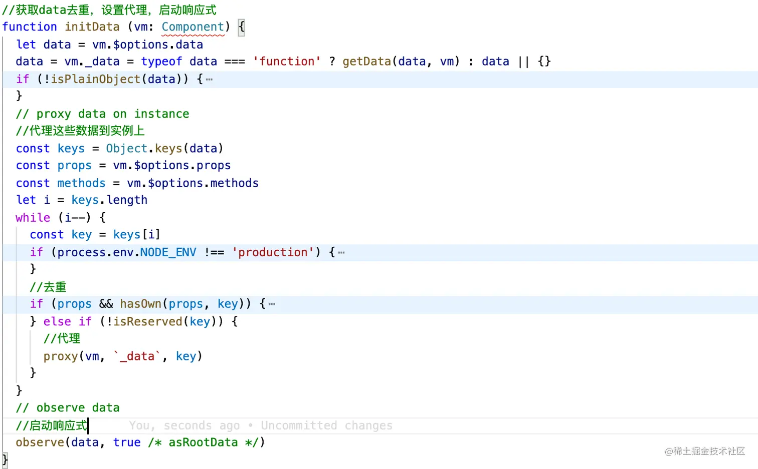 断点进入initState(vm) => 断点进入initData(vm) => 断点进入observe(data, true /* asRootData */) => 进入重点文件src/core/observer/index.js