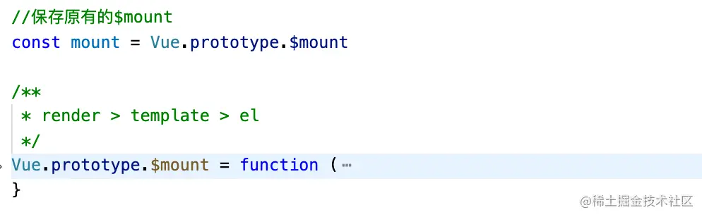 分析代码可知,最终目的是为了覆盖$mountreturn mount.call(this, el, hydrating)