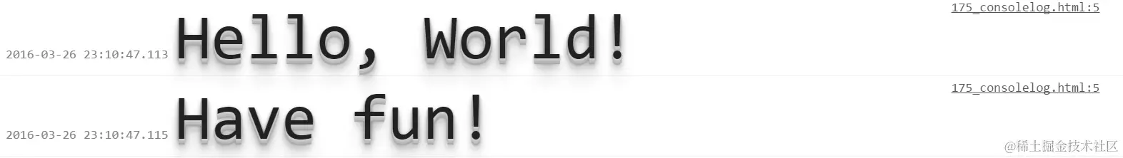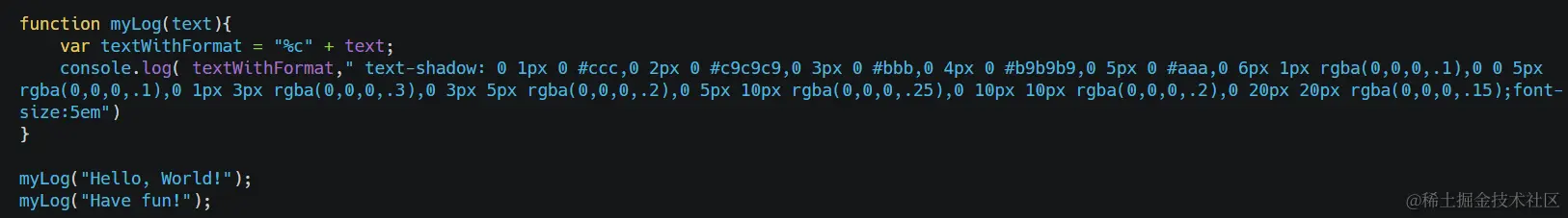 采用下列自定义函数myLog输出的日志,在console里显示的效果如下: