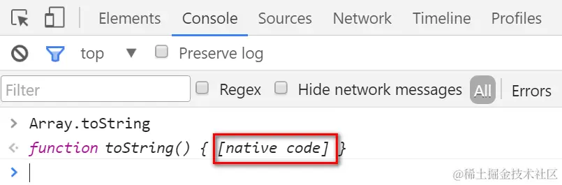 这种说法其实并不准确,因为我们没办法在Chrome里查看浏览器原生方法的实现代码,更别提设置断点了。
