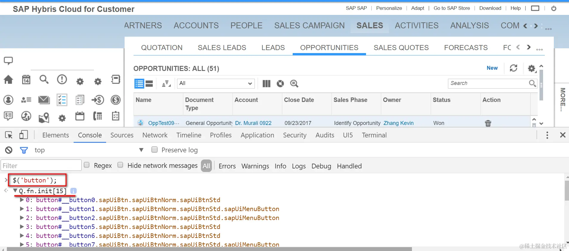 比如我想快速知道当前UI一共有多少个button元素,并查看某些元素的详情。采用类jQuery选择器的语法$(‘button’)即返回所有button元素。