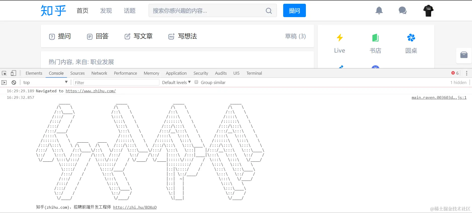 用Chrome打开我们常用的网站,按F12,在Console标签页里看到这些信息,这些都是很老的梗了。