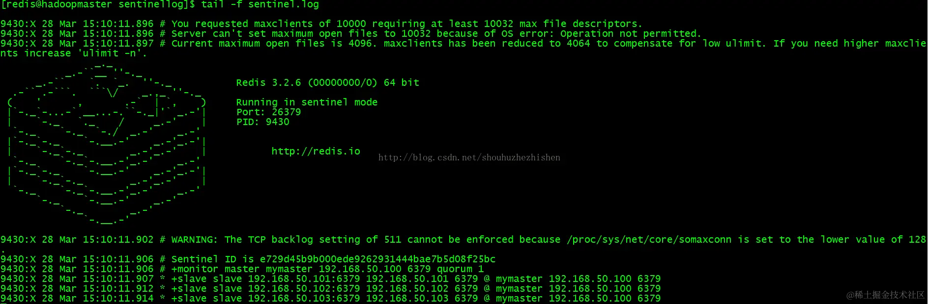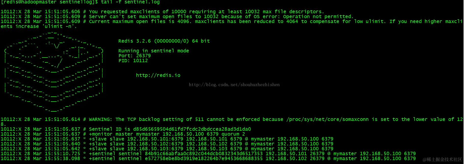 在192.168.50.100启动Redis哨兵节点命令如下: