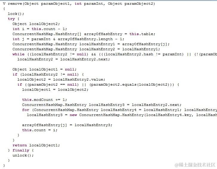 同样,remove操作也是如此(类似put,一开始就锁住真个segment)。