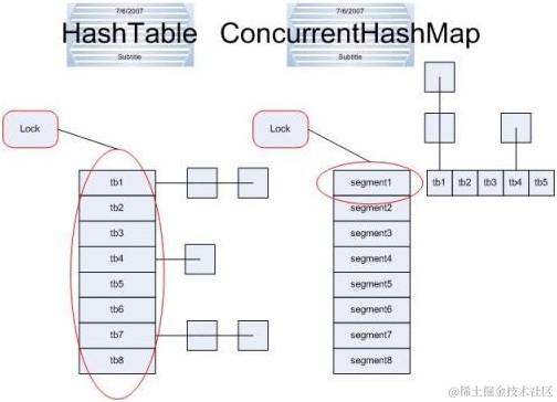 但是hashtable每次同步执行的时候都要锁住整个结构。看下图: