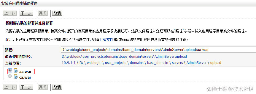 4、进入下一步,选择对应的war包进行部署,下一步下一步直至完成
