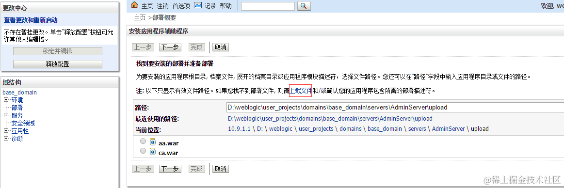通过弱口令weblogic/weblogic登录控制台,下一步获取如何上传webshell呢?