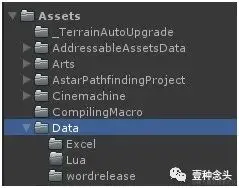 这个是工程的数据文件夹,主要存放策划编辑的表格数据,以及Lua脚本和一些散列的配置项。策划只有这个目录的写入权限。