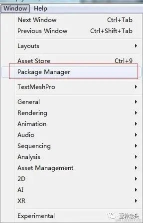 前面说了,Packages是一个只读目录,那么如何去管理它呢?答案是Unity提供的一个Package Manager窗口。入口如下图: