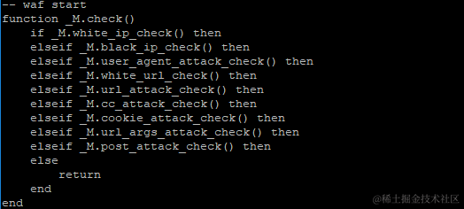 先熟悉一下检测流程,x-waf目录的waf.lua,程序入口: