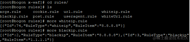 在x-waf/rules中,默认存在着白名单和黑名单,默认都有ip:8.8.8.8