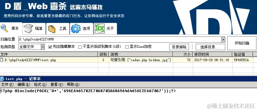 再次用D盾_web查杀进行扫描,还是被查到了。