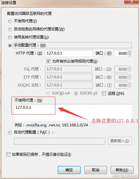 有些浏览器默认本地地址localhost/127.0.0.1不使用代理,解决方法如下图: