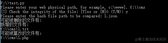 print u"可能被篡改的文件有:"