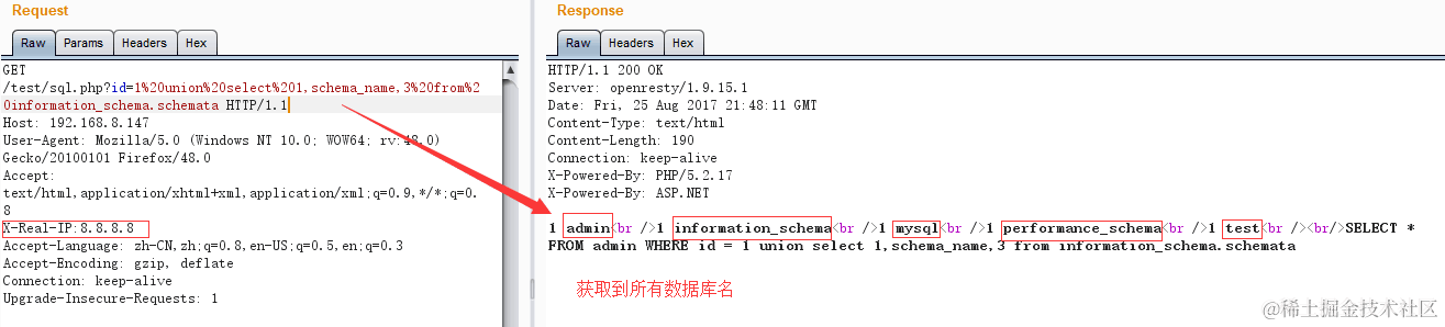 因此我们可以通过构造HTTP请求Header实现伪造IP来源为 8.8.8.8 ,从而绕过x-waf的所有安全防御。