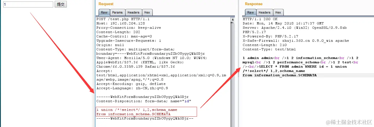 将Post、Get数据包转为上传multipart/form-data格式数据包,利用协议解析的差异,从而绕过SQL防御。