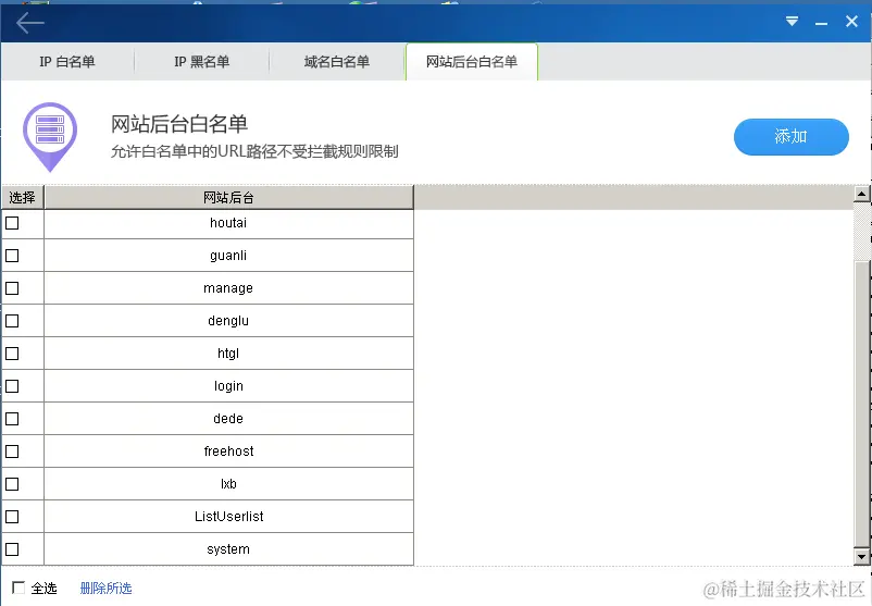 在360主机卫士客户端设置中存在默认网站后台白名单,如图: