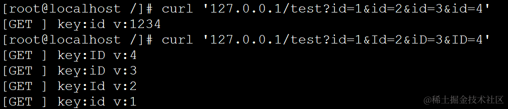 2、当参数id,进行大小写变换,如变形为Id、iD、ID,则会被当做不同的参数,大小写敏感。