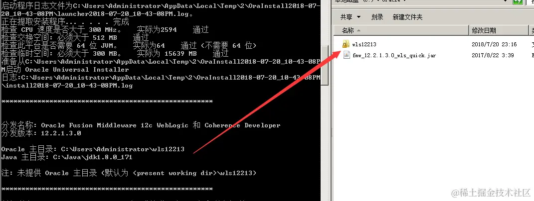 以管理员身份运行CMD,然后命令行进入该<ORACLE_HOME>目录并运行:java -jar fmw_12.2.1.2.0_wls_quick.jar;