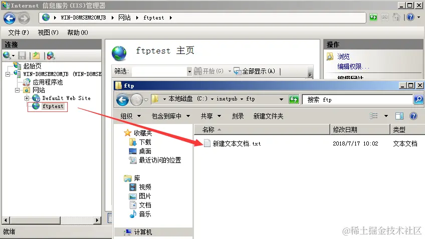另外,通过查看FTP站点,发现只有一个测试文件,与站点目录并不在同一个目录下面,进一步验证了FTP暴力破解并未成功。