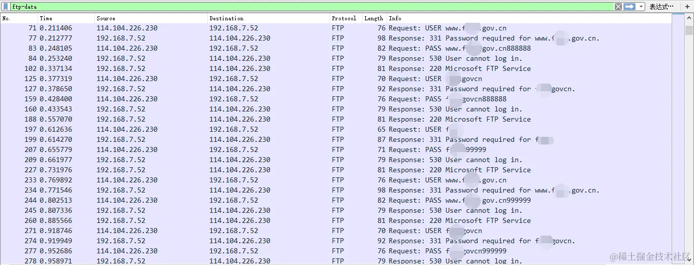 另外,日志并未记录暴力破解的IP地址,我们可以使用Wireshark对捕获到的流量进行分析,获取到正在进行爆破的IP: