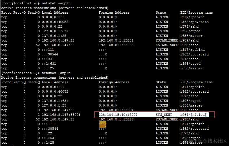登录服务器查看端口、进程,并未发现发现服务器异常,但是当多次刷新端口连接时,可以查看该连接。 有时候一直刷这条命令好十几次才会出现,像这种的短连接极难捕捉到对应的进程和源文件。