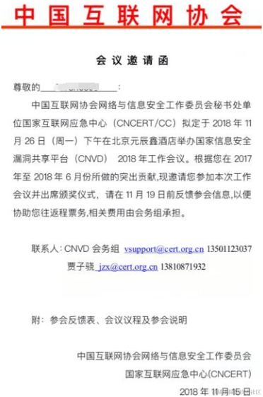 11月20号,意外收到一个会议邀请,当时还比较诧异,印象中我在CNVD并未提交过多少漏洞。思虑良久,确认接下来没有比较重要的工作安排,还是决定提前一天去帝都看看。