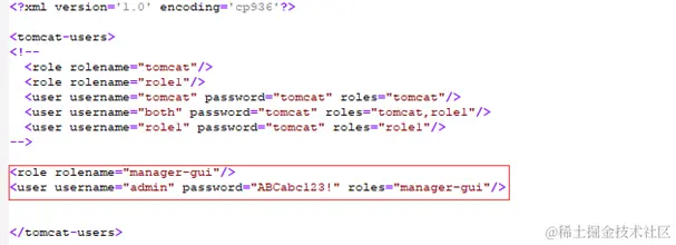 备份配置文件,修改tomcat/conf/tomcat-user.xml配置文件,将账号进行注释,
