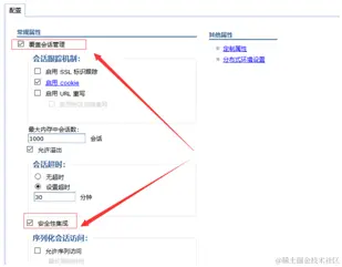使用的服务器的名称(server1)-->单击会话管理 -->在常规属性中,勾选覆盖会话管理和安全性集成 。