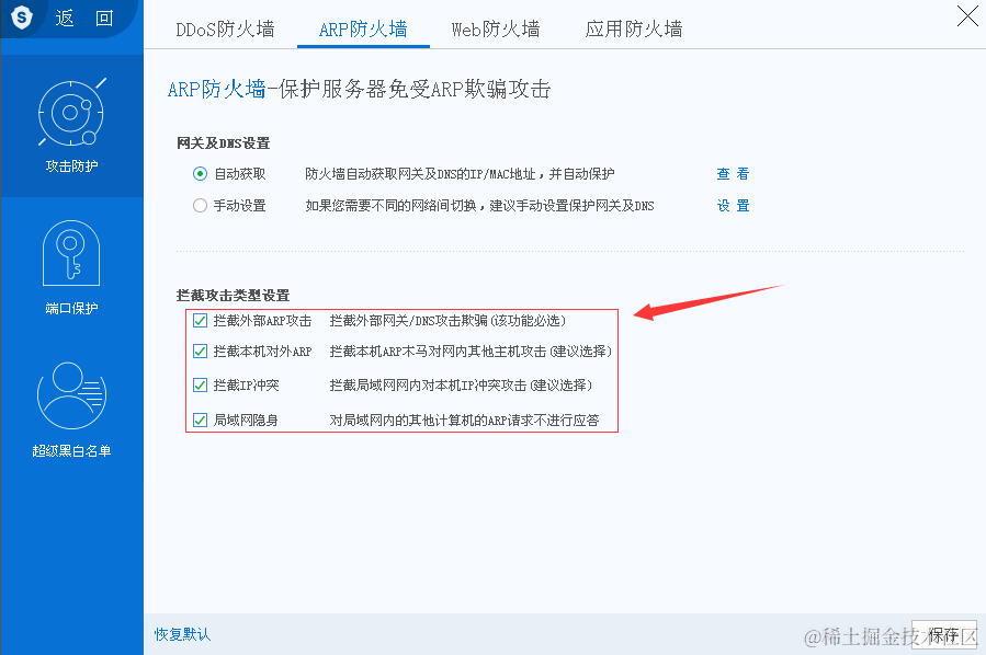 采用措施:通过借助一些安全软件来实现局域网ARP检测及防御功能。