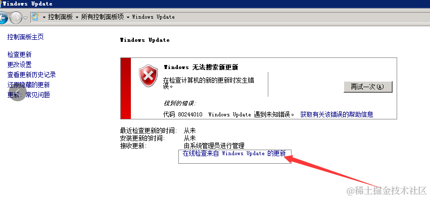 1、Window Update无法搜索新更新