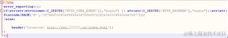 通过对index.php文件进行代码分析,发现该文件代码 对来自搜狗和好搜的访问进行流量劫持。