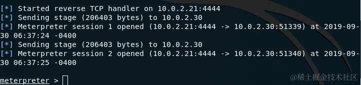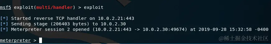 用户下次登录系统时,将打开一个新的Meterpreter会话。