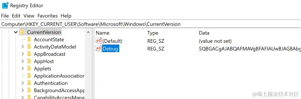 HKCU:SOFTWARE\Microsoft\Windows\CurrentVersion\Debug
