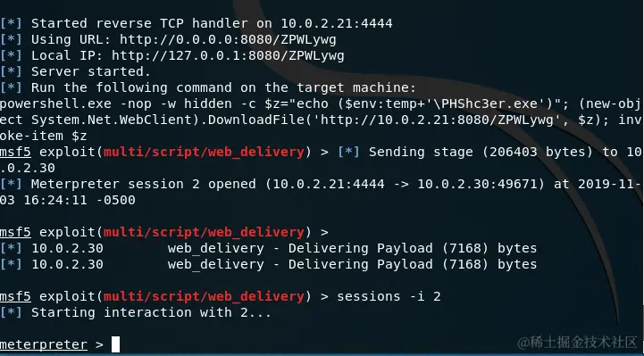 计划任务的持久化技术可以手动实现,也可以自动实现。有效负载可以从磁盘或远程位置执行,它们可以是可执行文件、powershell脚本或scriptlet的形式。这被认为是一种旧的持久性技术,但是它仍然可以在red team场景中使用,并且由各种开源工具支持。Metasploit 的web_delivery模块可用于托管和生成各种格式的有效载荷。