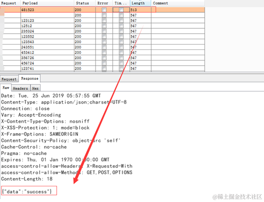 我们注意到返回的是失败,如果返回成功,是什么样子呢?通过测试,如果验证码输入正确,返回{"data":"success"}。