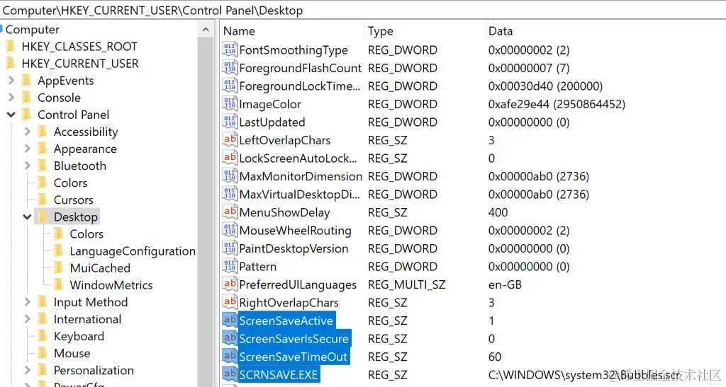 屏幕保护程序–注册表项