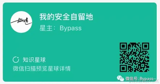 我创建了一个付费社群,用于支撑公众号日常运营,分享高质量安全干货,并邀请一些优秀的个人作者加入参与。抱着一种学习与交流的心态来的,我希望这里慢慢地可以成为一个交流和分享的平台。如果你觉得我写的这些文章,对你有一点点帮助;如果你认为这种运营模式,可以给你以及更多的安全爱好者带来帮助。你可以考虑支持一下我。目前,试运营阶段只有50个名额,欢迎你加入我的知识星球。