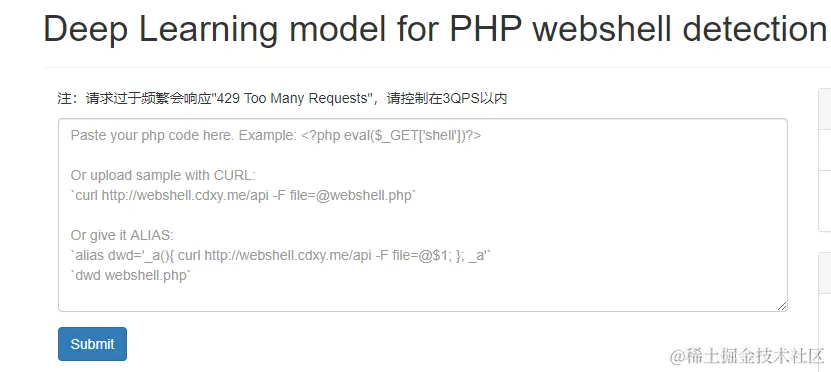 一个深度学习PHP webshell查杀引擎demo,提供在线样本检测。