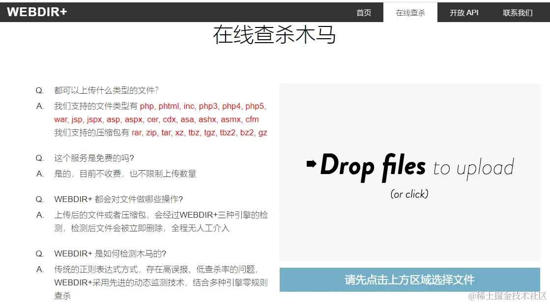 兼容性:提供在线查杀木马,免费开放API支持批量检测。