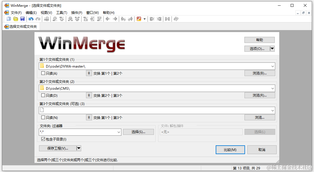 WinMerge是一款运行于Windows系统下的文件比较和合并工具,使用它可以非常方便地比较文件夹和文件,以易于理解的可视文本格式显示差异。